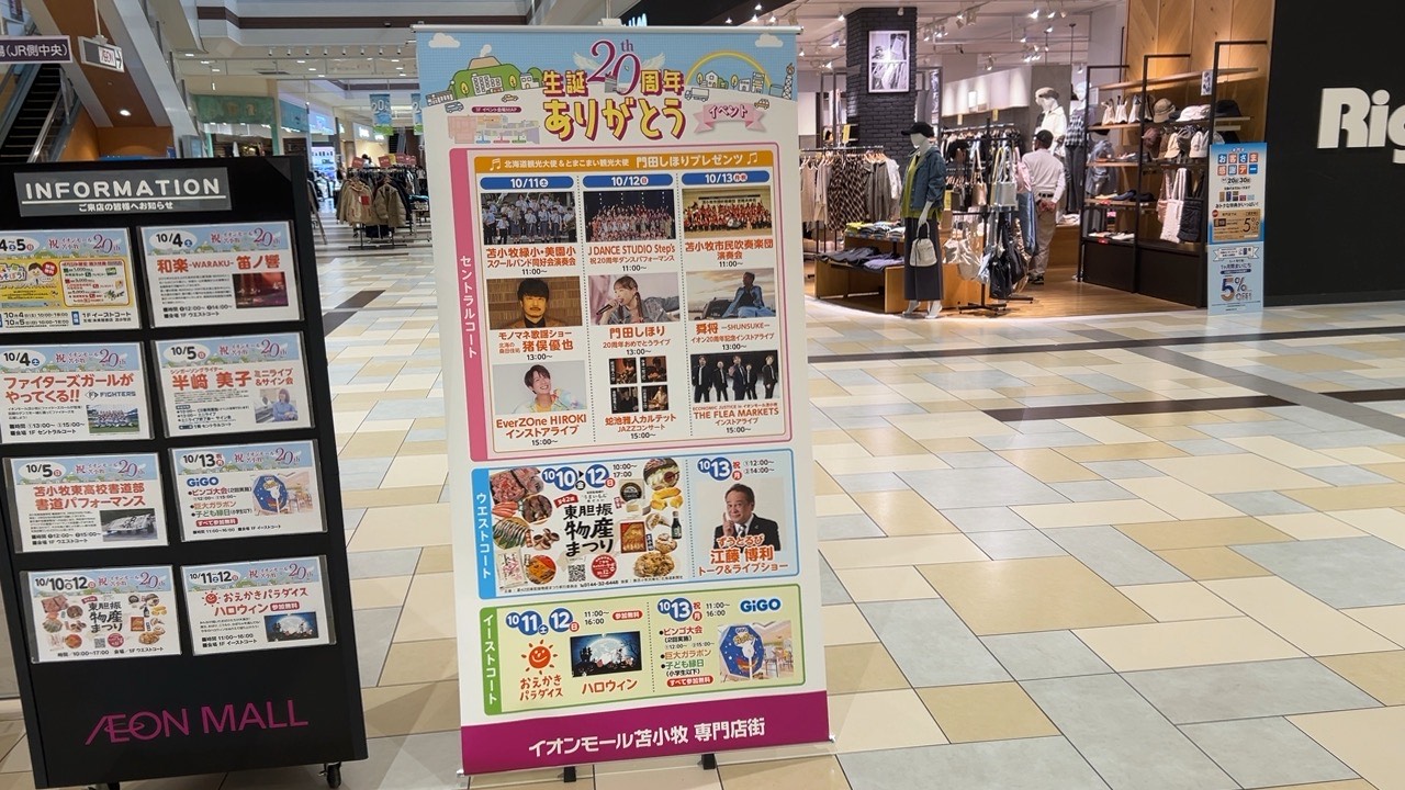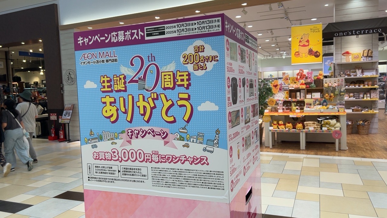 柳町のイオンモール苫小牧は、「生誕20周年ありがとう」イベント&キャンペーンを2025年10月3日から行います!