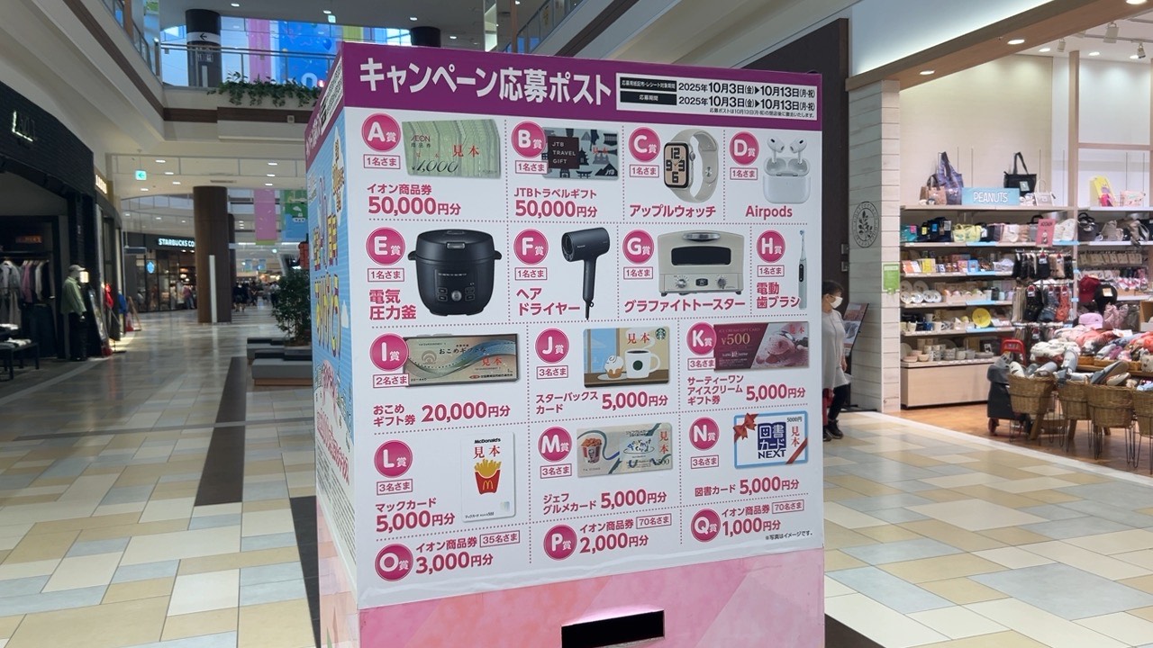 たくさん素敵な商品が当たるみたいですね♪応募ポストは1階の専門店街西側にありました!