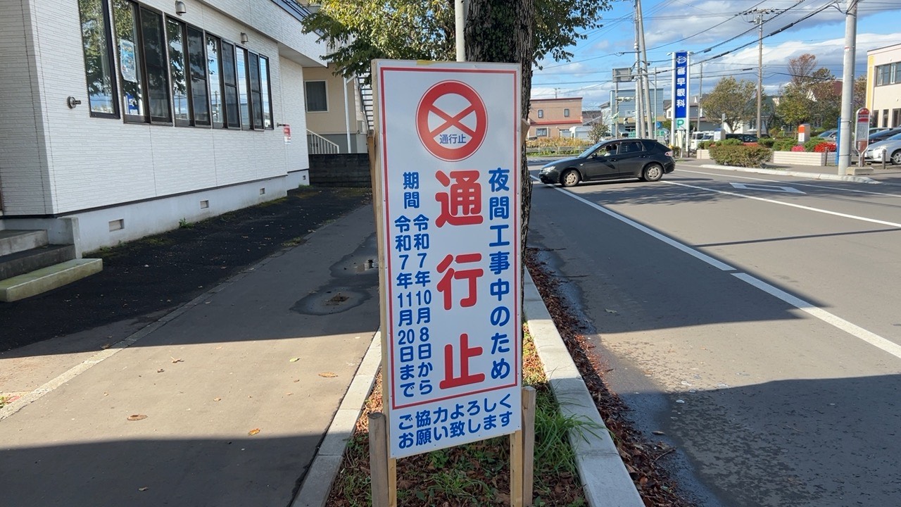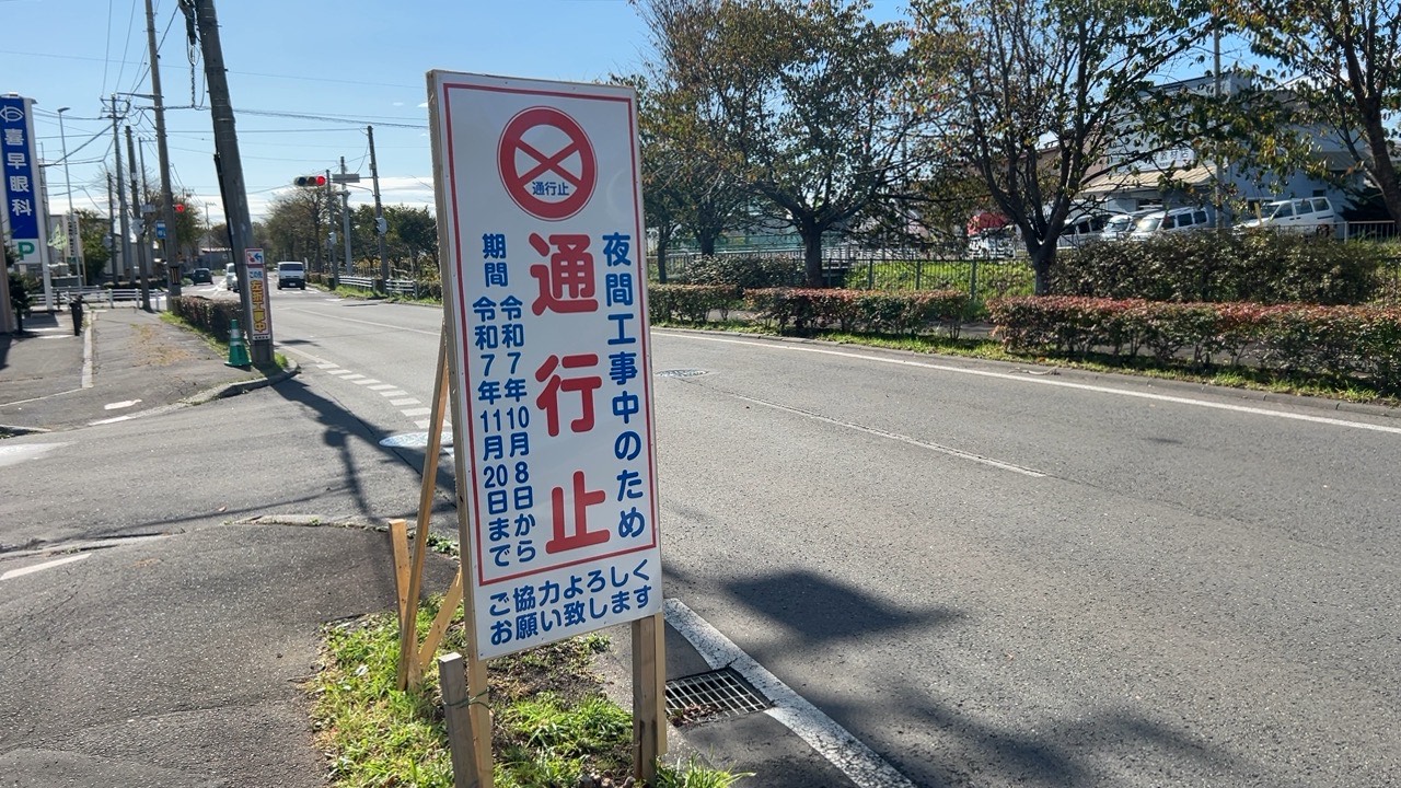 【苫小牧市】桜木町の喜早眼科前の「桜木中央通線」が補修工事のため11月20日まで夜間通行止めになります。