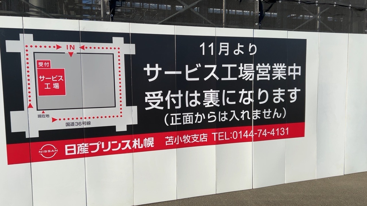 光洋町の「日産プリンス札幌販売㈱苫小牧支店」が2026年3月にリニューアルオープンします!現在改修工事中で、号外NETでは以前解体工事が始まったことをお知らせしました!