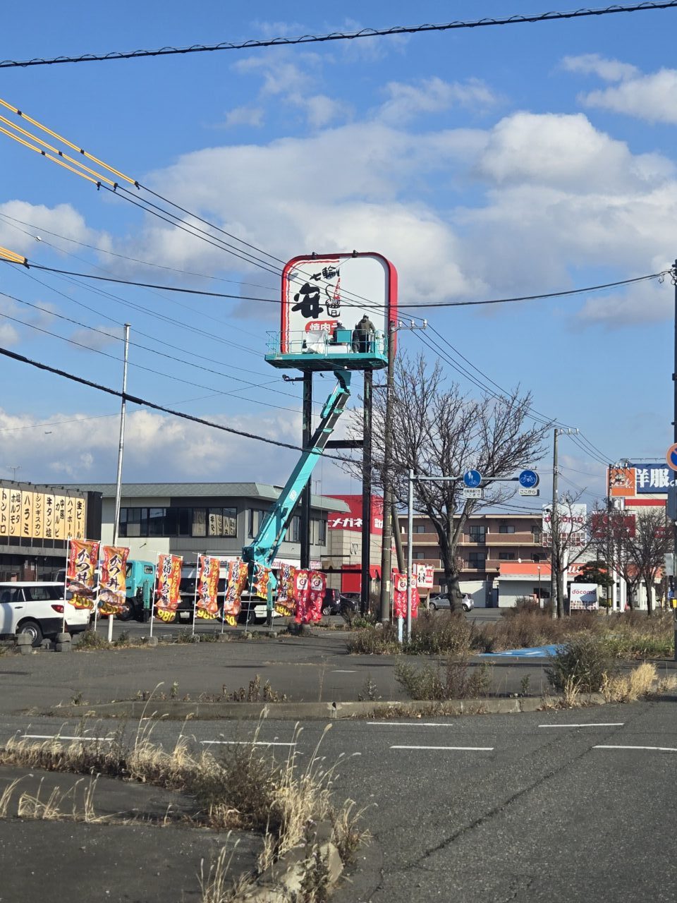 そして読者の方が看板取り外し中の写真を提供していただきました!高所作業車で取り外しを行っています。