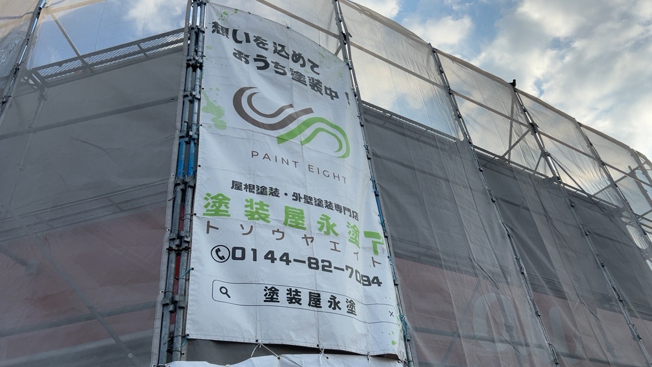 周りを見てみると、塗装屋さんのお名前と「想いを込めて塗装中!」との文字が確認できました!