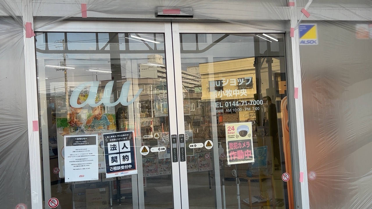 【苫小牧市】北光町の「auショップ 苫小牧中央」に足場が組んでありました。通常通り営業中のようです!