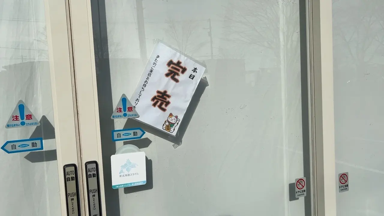 こちらが旧「銀座に志かわ 苫小牧店」です!看板がない状態ですがなにか貼り紙があったので近くを見てみました。