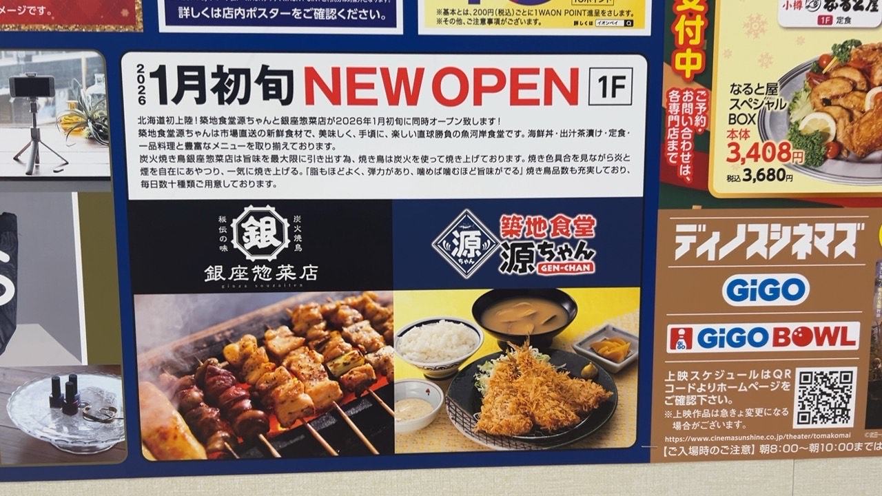 柳町のイオンモール苫小牧内に2026年1月初旬に2店舗同時オープンする情報が入りました!1階レストラン街の一角を見てみると…