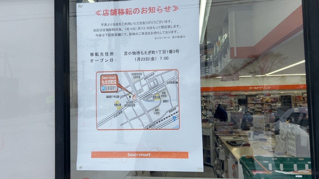 また、移転先の住所には1月23日にオープンする「セイコーマートもえぎ町店」が記載されていました。