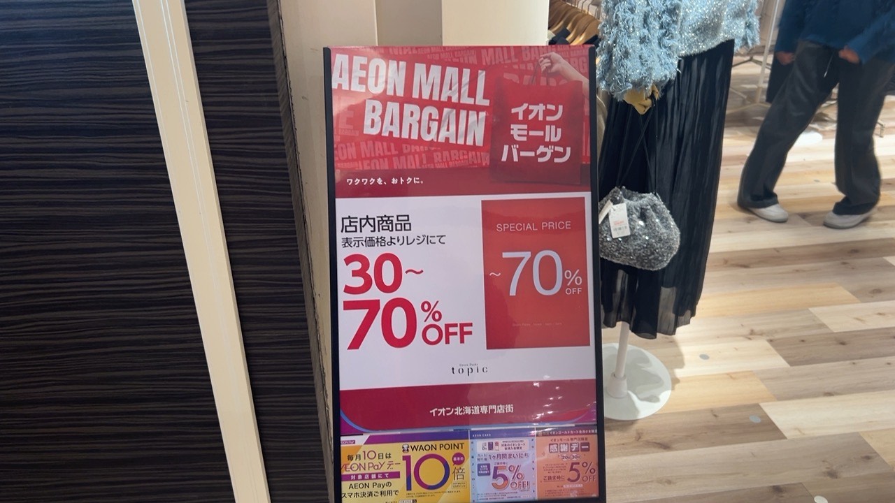 MAX70%の商品も多く取り揃えているようでしたよ。