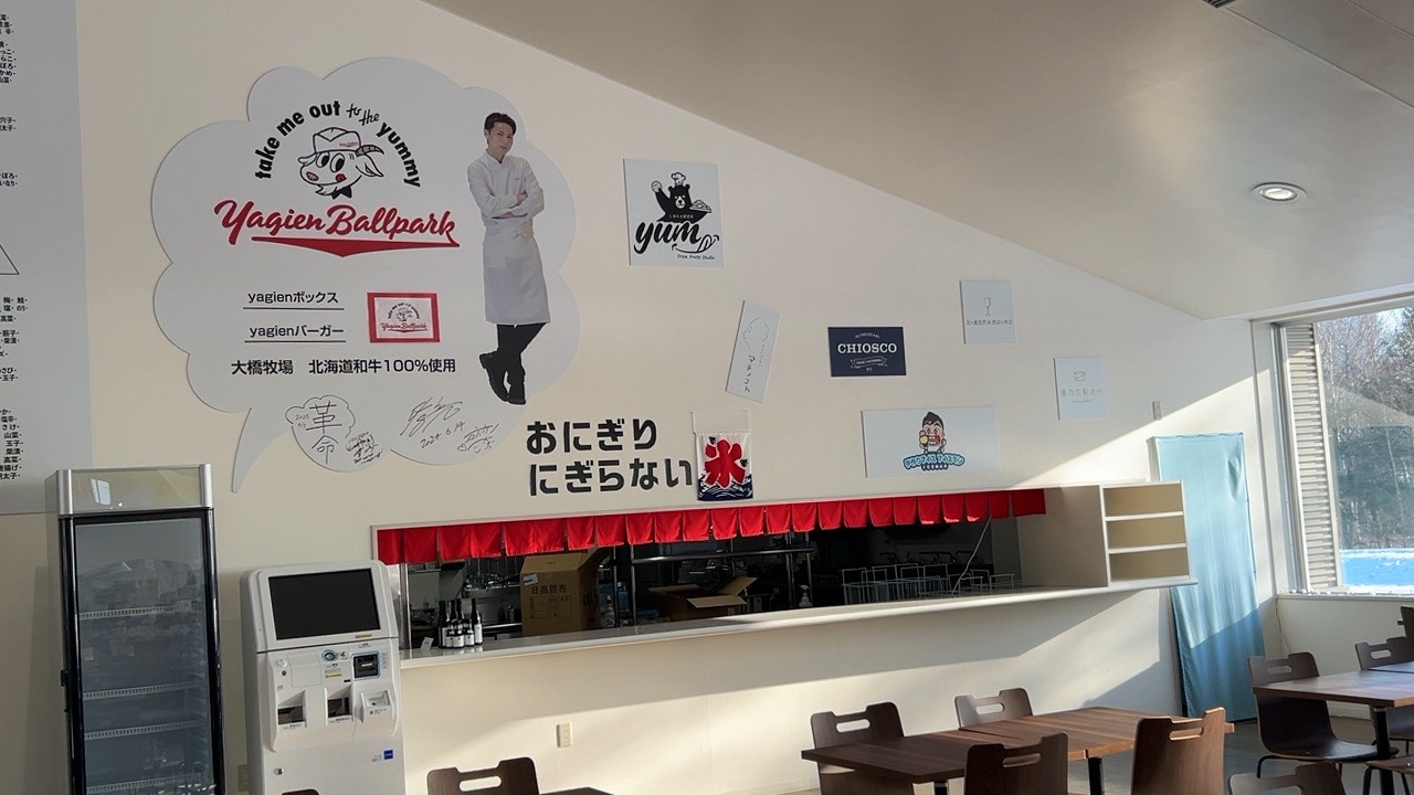 このお店は、にぎらないおにぎりと手作りアイス、またEXILEのメンバーで苫小牧市出身のSHOKICHIさんがプロデュースする飲食店「yagien ballpark」の和牛で、道の駅オリジナルの「yagienバーガー」などが販売されていたそうです。