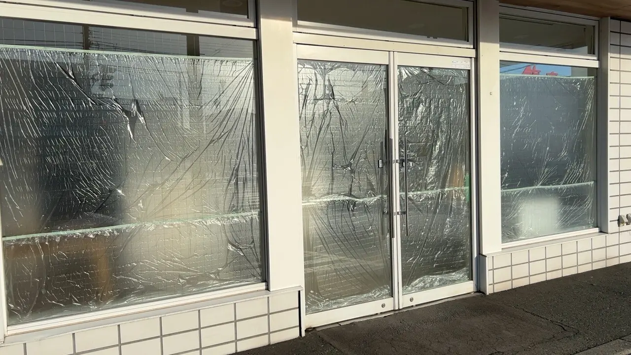 入口前はビニールが貼ってあり中が見られない状態で、移転時期の情報は確認できませんでした。