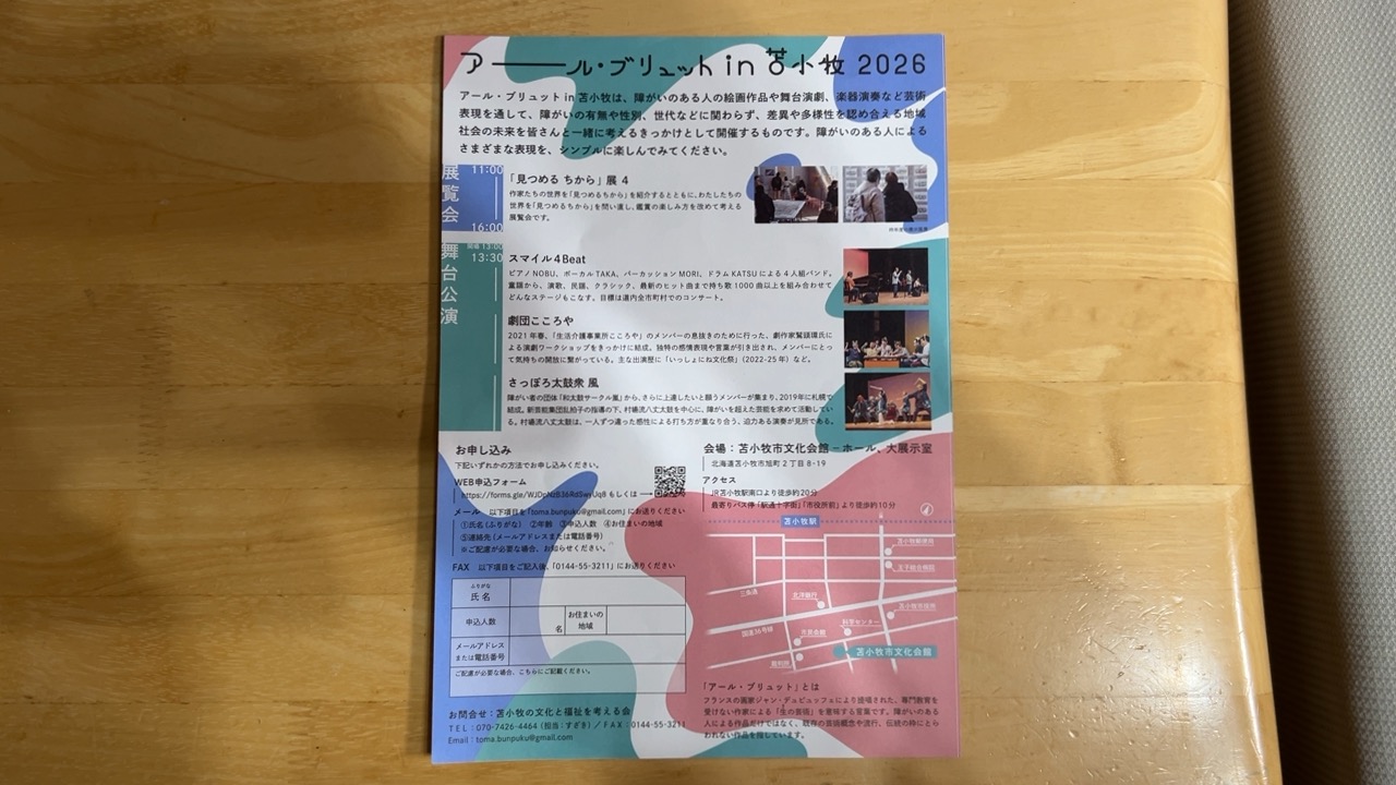 【苫小牧市】2月28日開催!苫小牧市文化会館で「アール・ブリュットin苫小牧2026」舞台鑑賞の事前受付が始まっています