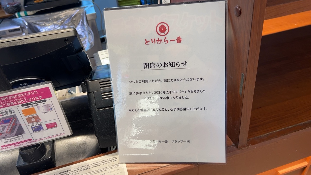 カウンターのところには、閉店のお知らせと題したものがおいてありました。そこには2026年2月28日(土)をもって閉店する旨が記載されていました。