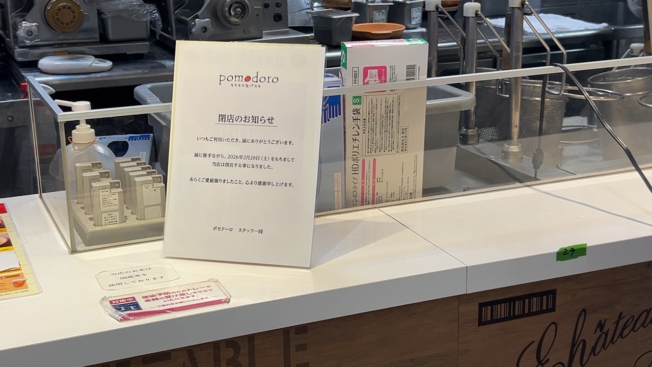 同じくカウンターに閉店のお知らせと題したものがおいてあり、2026年2月28日(土)をもって閉店する旨が記載されていました。『ポモドーロ』と同じ日に閉店という形になるようですね。