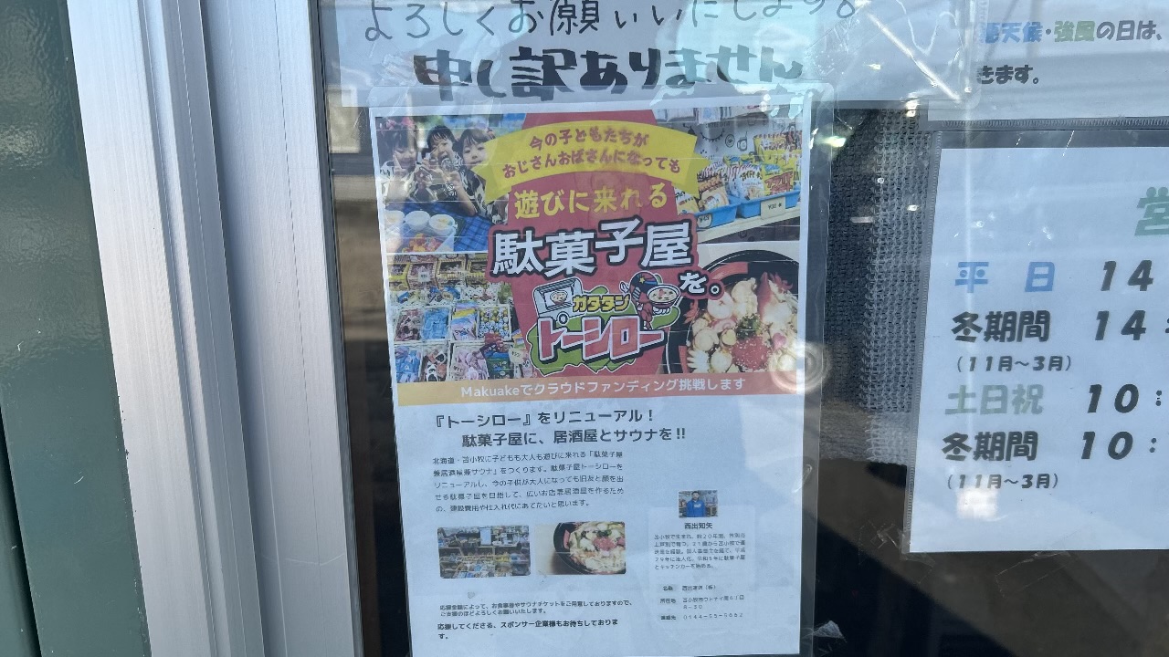 【苫小牧市】ウトナイ南の「駄菓子屋トーシロー」がリニューアル!駄菓子屋に加え、居酒屋と個室サウナのスペースをオープン予定です。