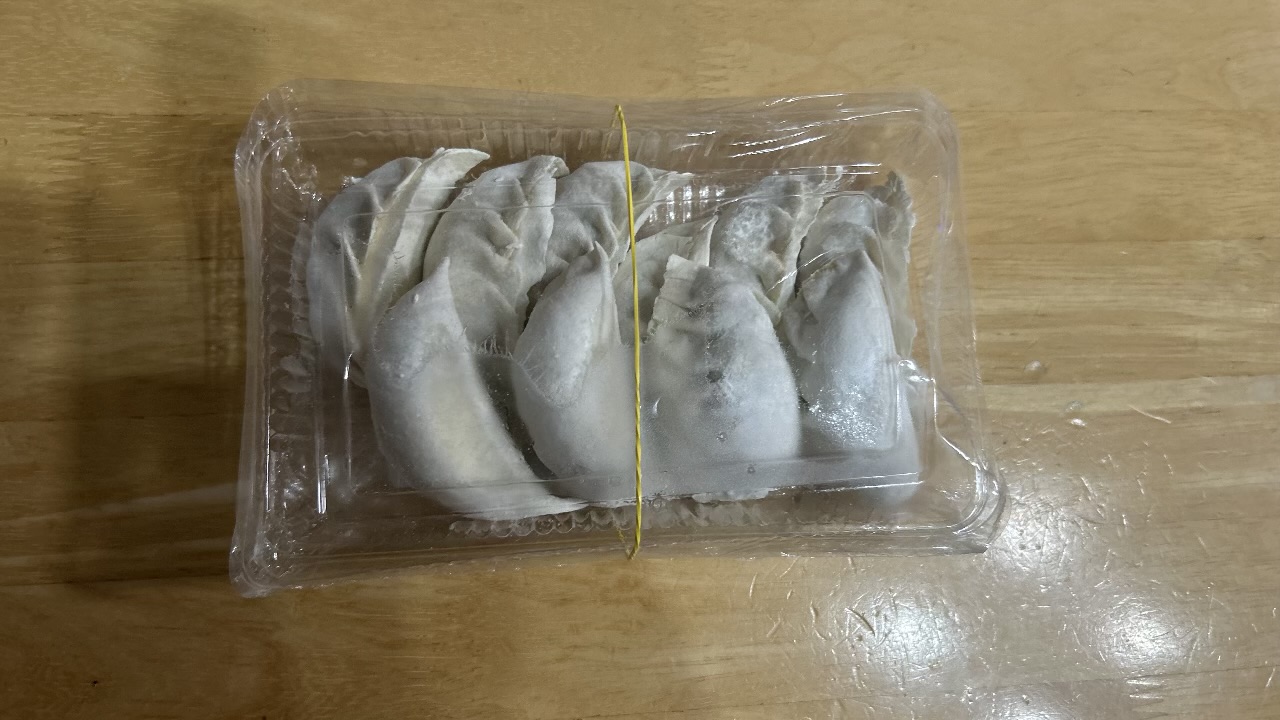 購入したのは冷凍餃子です!(写真は10個入り、税込650円)パックに入って渡されます!