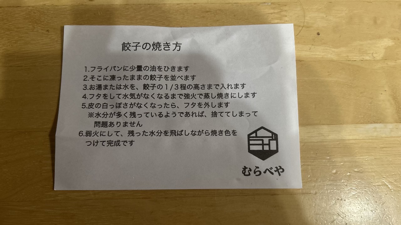 中には餃子の焼き方が書かれた説明書も入っており、自宅でも調理しやすいようになっていました。