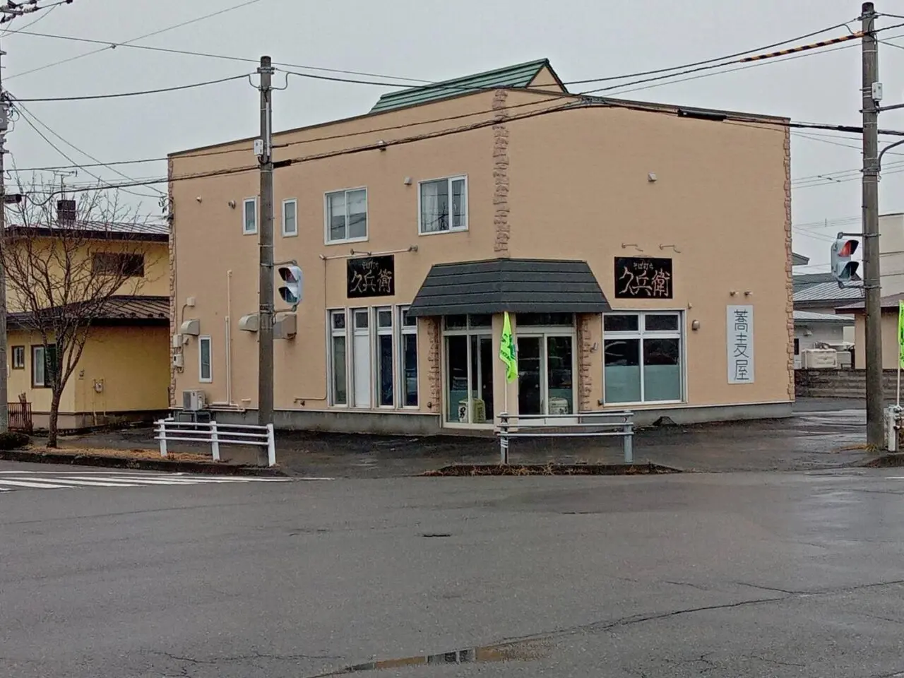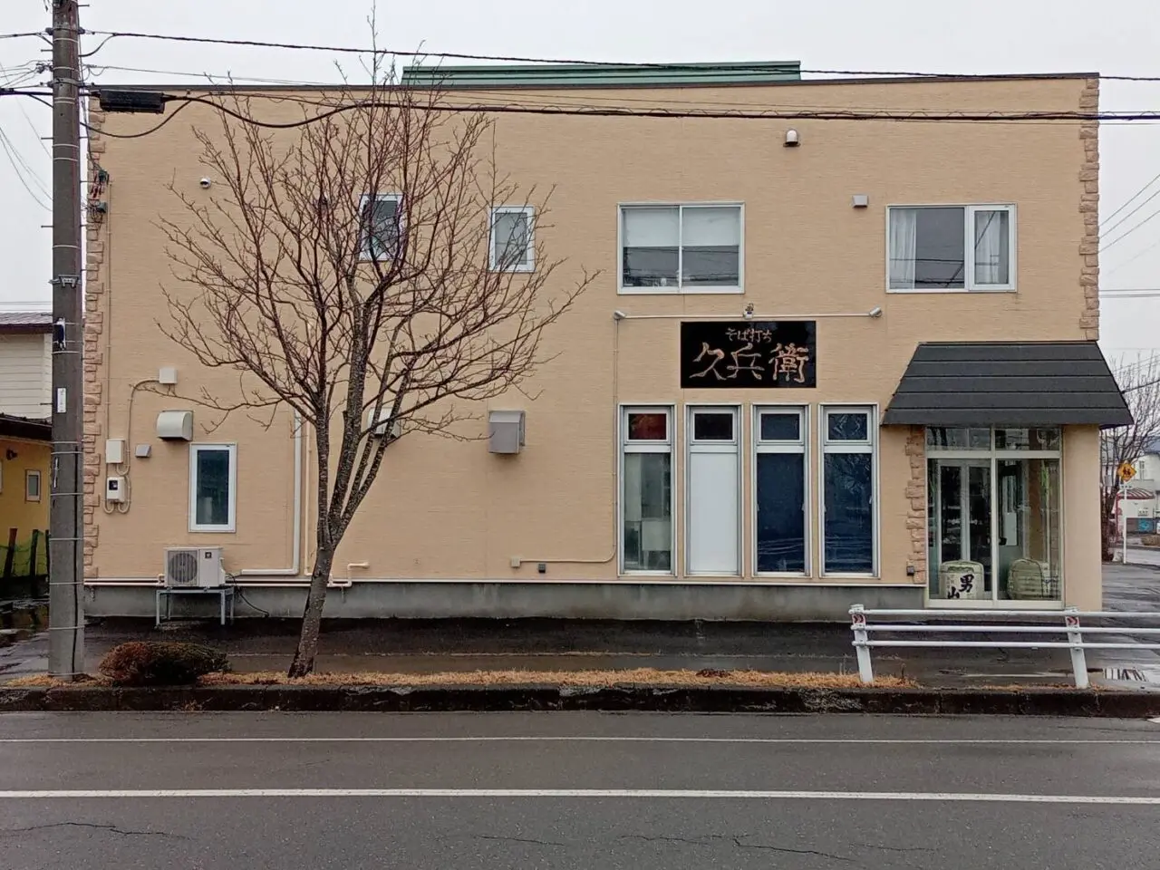 建物の看板が変更されており、「そば打ち 久兵衛」という文字が掲げられているのを確認しました。看板には「蕎麦屋」と書かれた表記も見られます。
