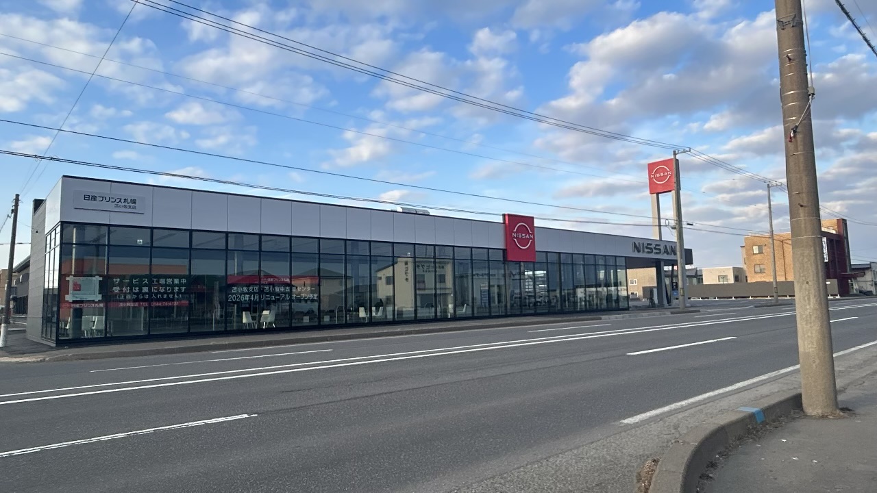 【苫小牧市】柳町の「日産プリンス札幌 苫小牧東支店」が営業終了し、本日4月4日から光洋町の新店舗「苫小牧支店」へ統合されます!