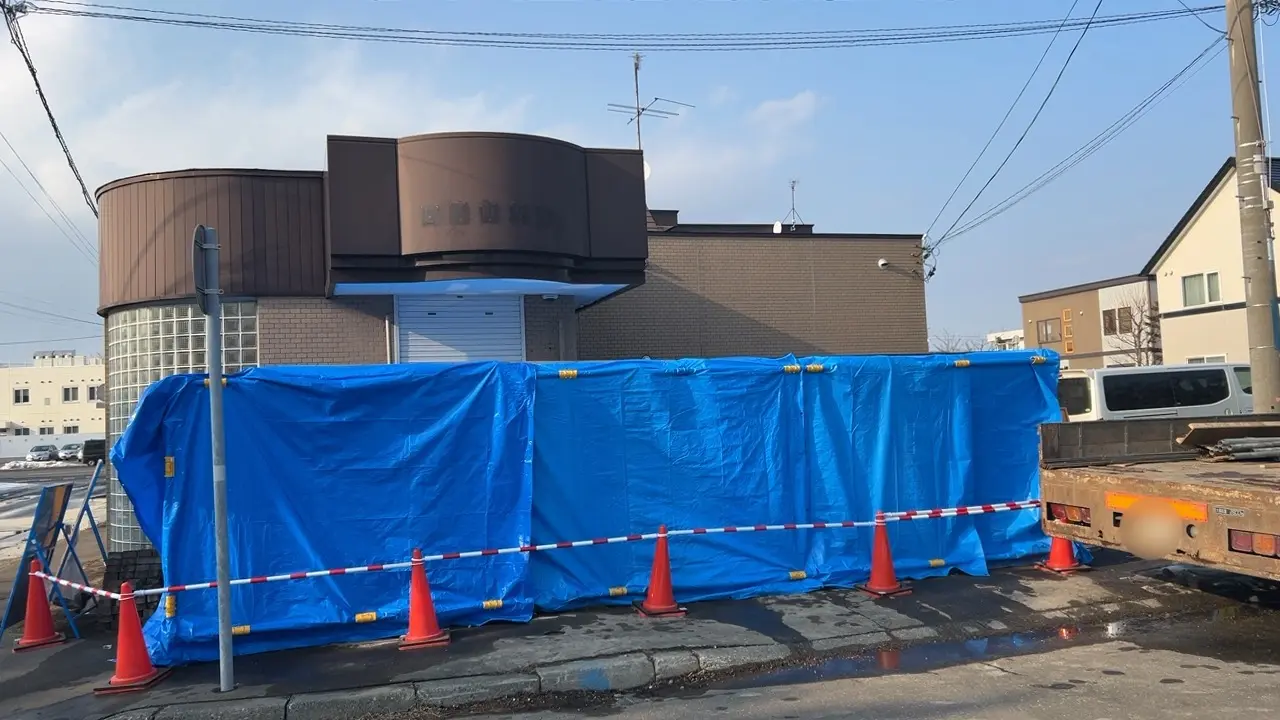 こちらは、以前「高橋歯科医院」があった場所です。関係者の話によると「高橋歯科医院」は2025年12月末をもって閉院したとのこと。2026年2月ごろには建物にブルーシートが張られている様子も確認できました。