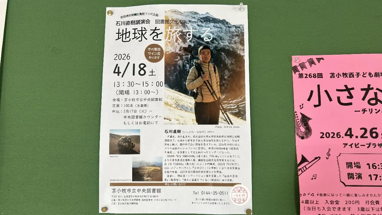 2026年4月18日(土)に末広町の中央図書館にて「石川直樹講演会 地球を旅する」が開催されます。