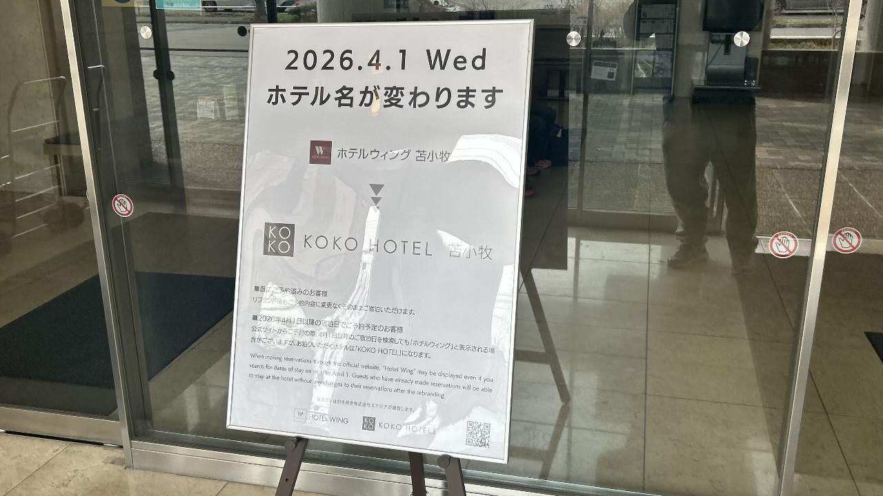 【苫小牧市】JR苫小牧駅近くにある「ホテルウィングインターナショナル苫小牧」が「KOKO HOTEL 苫小牧」に名称が変更になりました。