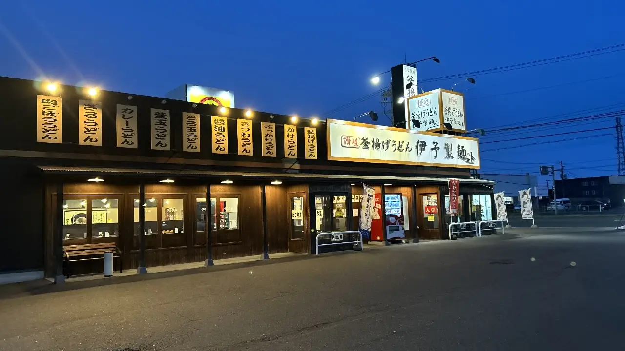 新中野町にある「伊予製麺苫小牧店」です。リーズナブルな価格で讃岐うどんが楽しめるお店です。