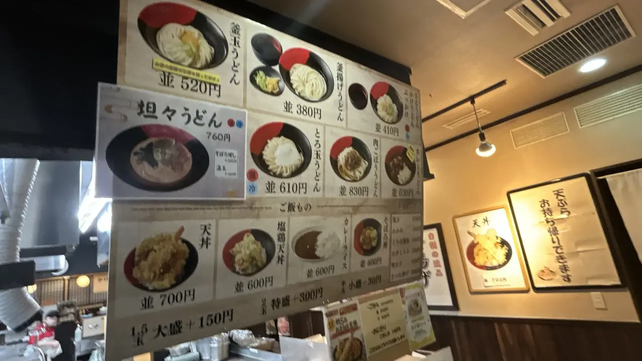 セルフ式で気軽に利用できるスタイルで、注文後にうどんを受け取り、天ぷらやおにぎりなどを自由に選べるのが特徴。短時間で食事を済ませたいときにも便利です。