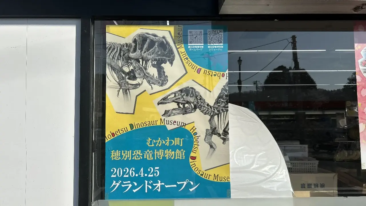 町の至る所にオープンにポスターも貼られています!1982年開館の穂別博物館を道内初の恐竜博物館としてリニューアルし、新設の恐竜館と既存施設を海洋化石館とする2館体制となったとのことです。