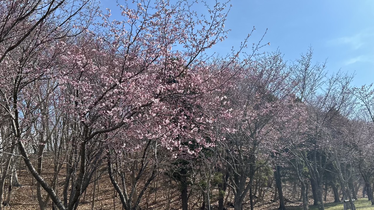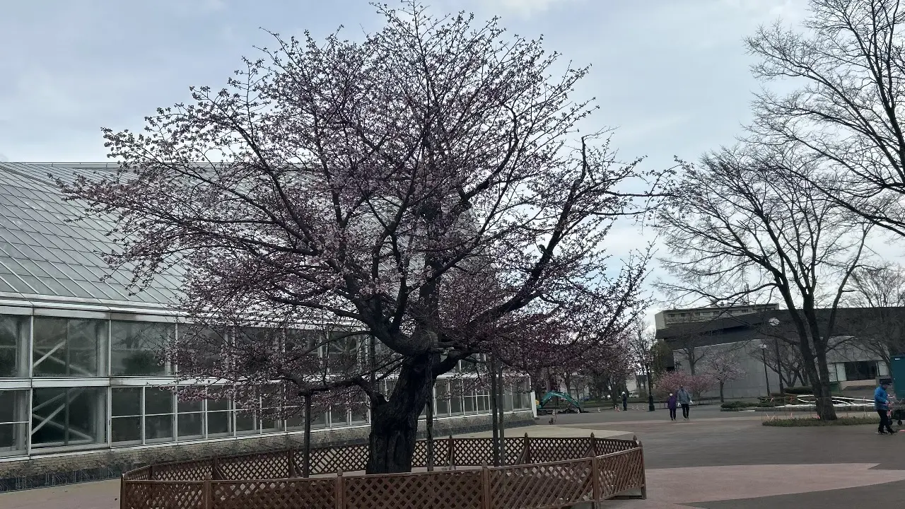 近くで見ると、見応えのある景色が広がっています。苫小牧市では正式な開花宣言は発表されていませんが、tenki.jpの天気予報によると、GW中はぐずつく天候の日もありますが、最高気温も15度前後となるようで、タイミングを見てお花見を楽しみたいところですね。